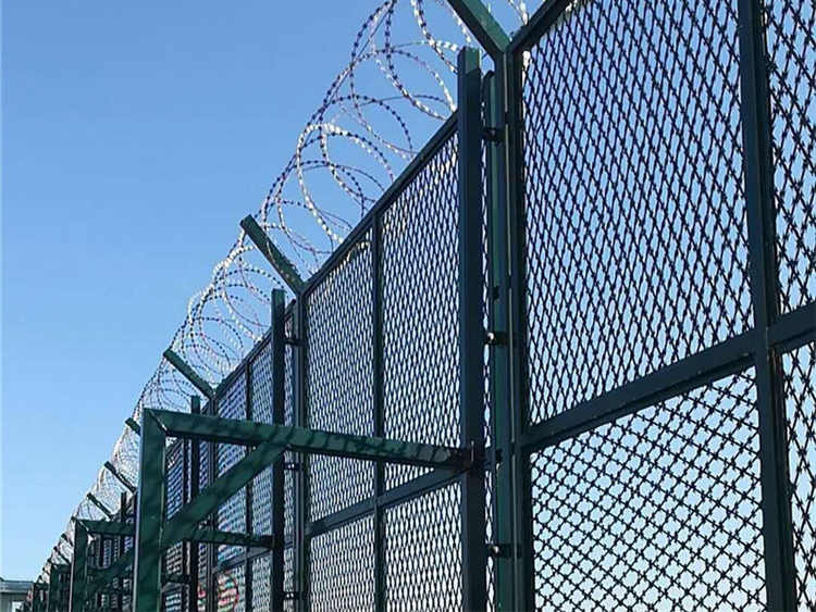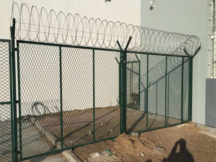 监狱防冲撞钢网墙艾瑞产的一种新型防护网,由锐利尖角镀锌钢板或不锈钢薄板做刀片,钢丝做芯线组合而成的防护器材该产品具有吓阻、防翻越等效果,材质坚硬,高强度,高张力,造型设计独特,不宜触摸,因而能达到防护隔离效果。还具有施工简便,经济实用等优点。