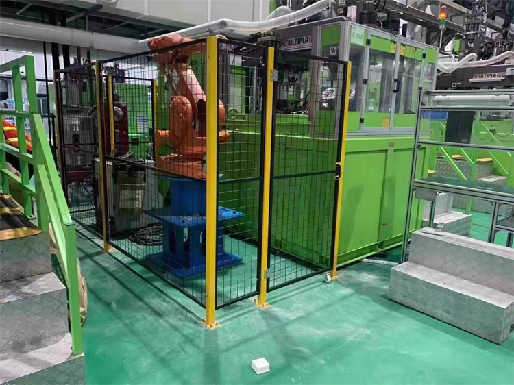 机器人围栏网主要用在,工厂车间,仓库,及各类大型的生产设备,机器人等的四周区域。起到区分,隔离,防护人员和设备安全,同时又能有效的提高工厂车间空间利用率及高视化管理,部分区域会安装或留出通道便于货物进出和人员检修。,不仅可以按现场的需求进行各种定制,同时也因工业铝型材的品种及连接方式多样性,使之成本低,灵活快捷的施工装配是现在数据化工建设的基础。