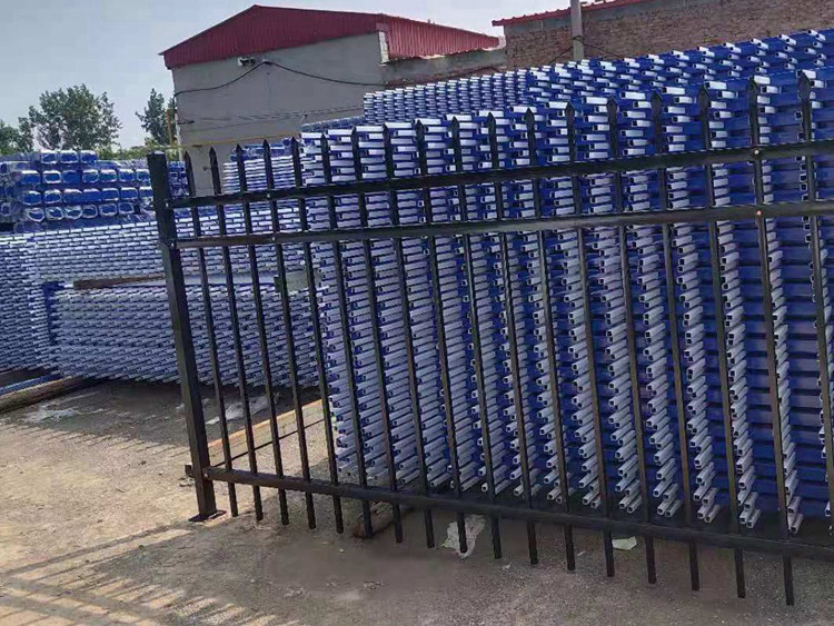 蓝白围墙方管组装护栏水洗除去铁艺工件表面的酸水及其它附着物、上助镀剂再次清洗工件表面,保证表面在镀锌之前不在生锈。烘干进步铁艺工件温度,避免铁艺表面水分过多,在镀锌时发作爆炸。热浸锌工件浸泡于440℃-470℃熔融的锌液中,抵达一定时间后提出,铁艺工件表面被获得一层锌铁合金层和纯锌层镀层。