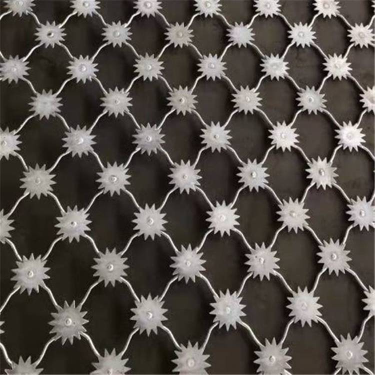 梅花刺钢网墙是由v型支架立柱,加强型焊接片网,安全防盗连接件和热镀锌刀片刺笼组成强度和安全防御性级别很高。用途:近年来,被广泛应用在监狱,看守所、军事基地等高安全场所。