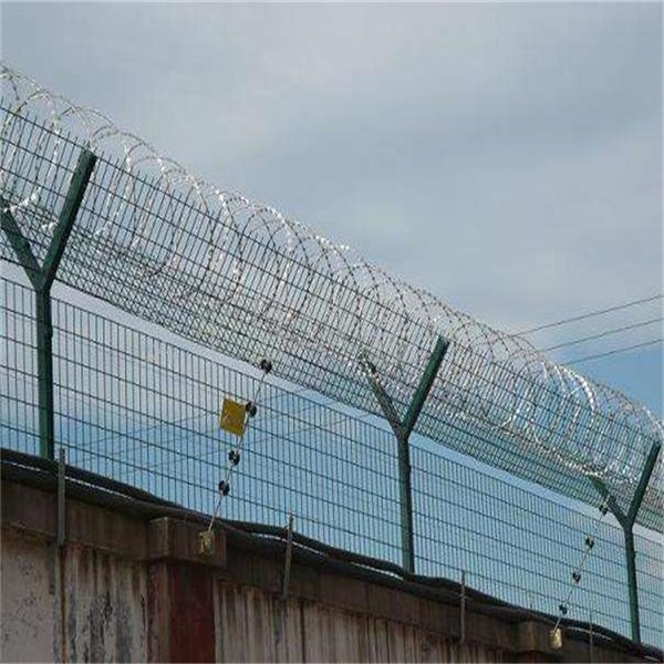 2500mm -3000毫米,顶部安装V型刀片刺网的高度,用50厘米直径60厘米,主要由热浸镀锌钢板或不锈钢薄板金属形成的剃刀线,它有锋利的刀片,高强度镀锌钢丝或不锈钢丝相结合的产物。由于刺网的形状很特别,每个点都有一个刀片状的提示,从而可以实现出色的防守保护作用 监狱隔离网墙的优点 1.产品美观,实用,方便运输和安装的特点