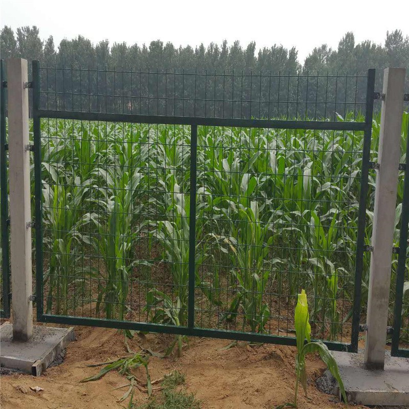 6、栅栏门:栅栏门根据工务、电务等设备检查和维修施工作业的需要设置。钢筋混凝土立柱金属网片防护栅栏可采用单开门或双开门两种形式。单开宽度1.5m,双开宽度3m,其网片形式与防护栅栏保持一致,并通过销铀、销铀套与立柱连接