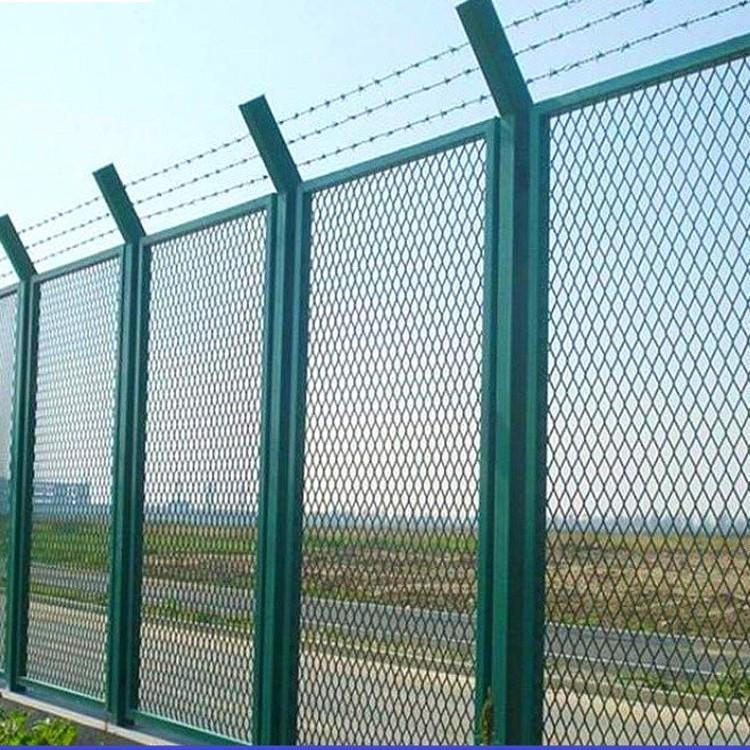 机场围界防护网立柱的顶部焊接V型弯头,这种立柱也叫做Y型立柱,顶部用以架设蛇腹形刀刺网,与下部的机场防护网完美结合,形成一道难以逾越的铜墙铁壁。机场围界网蛇腹形刀刺网材质:热镀锌,不锈钢304,不锈铁。目前我国的绝大部分机场已经淘汰了热镀锌刀刺网,选用不锈钢304材质,解除了两年锈三年一换的后顾之忧。圈径:Φ500mm、 Φ600mm、Φ800mm,根据圈径的不同,对应每米的使用量也不相同,所以核算到每延米的价格也会有差别.