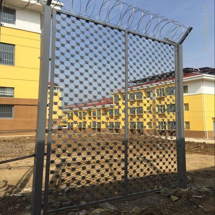 监狱护栏网镀锌有热镀锌和冷镀锌两种,与浸塑的目的一样,镀锌也是防止护栏网被腐蚀,其中的热镀锌护栏网的防腐效果完全不输浸塑护栏网,甚至更甚之,但是从色泽丰富度上来讲相比于镀锌就有些单调子 没有了红黄黑绿等颜色的点缀,少了些浮华却多了些厚重:镀锌经常和浸塑工艺相结合使用,就相当于在镀锌护栏网的表面再进行浸塑处理。这样做既可以使护栏网的防腐性更好,大大延长了其使用寿命,又可以满足外观的要求,为其增姿添彩。尤其在一些国家工程、重大项目等的应用中更是采用这种方法来制作成镀锌浸塑护栏网。镀锌护栏网经常出现在框架护栏网或是钢板网护栏网这些种类中。