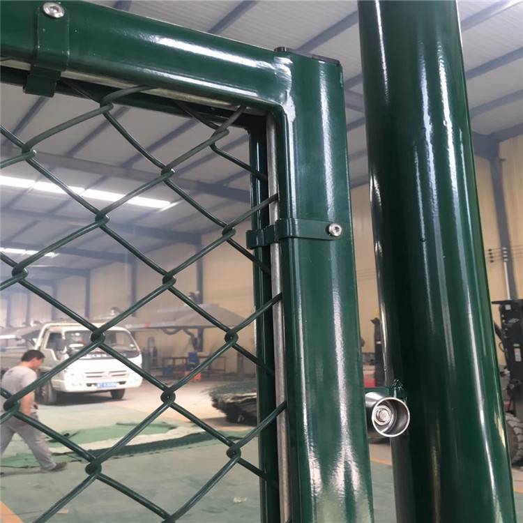篮球场围网—般是采用勾花网网片制作的一种用于篮球场周边起隔离防护作用的围栏。篮球场围栏一般高度在4-5米,立柱间隔2.5-3米;立柱一般采用60-75mm的钢管,钢管壁厚不小于1.5mm,经浸塑出处理。篮球场围栏一般采用勾花网制作网片,对勾花网的要求如下:丝径一般在4-5毫米之间的包塑钢丝,网孔一般为50*50mm。因为勾花网具有一定的伸缩性,所以弹性好,当球员或者球冲撞到围栏上时不宜受到伤害,网面受外力不会变形扭曲。