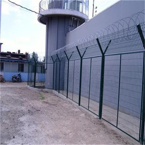 2、监狱防护网立柱问距2,5-3m,边框与立柱采用两侧焊接边耳,螺丝蛋寄式连接,边耳均为40mm*50mm*5mm扁铁,边耳螺孔可调.调节距高不小于15mm,边耳固定螺栓为直径12mm 50mm熱镀锌防盗螺栓、每片网单边连接点为6个以上。隔高网设计要求整体连置一致,框网方正,对角线课差不大于1.5cm