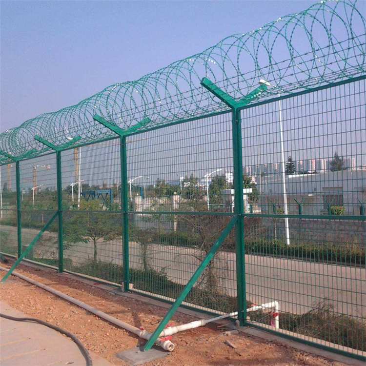 机场防护网基础构成材质方面具有很全面的认识。采用了低碳钢丝编织而成的护栏网,相互交织能力更加稳定,相邻的立柱与网片之间,采用的焊接与直埋地下等方式,将机场防护网高度控制在200cm-300cm之间(具体机场防护网高度标准可参考此链接)。此外机场防护网外层也采用双模防腐浸塑工艺,我们见到的绿色表面浸塑后的机场护栏网,就是采用了这种方式,达到了最好的防腐,使用寿命长的特点