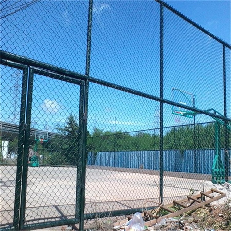 3、勾花护栏网,主要采用包塑网片工艺,网身具有弹性,可用于学校内部运动场地做防护。