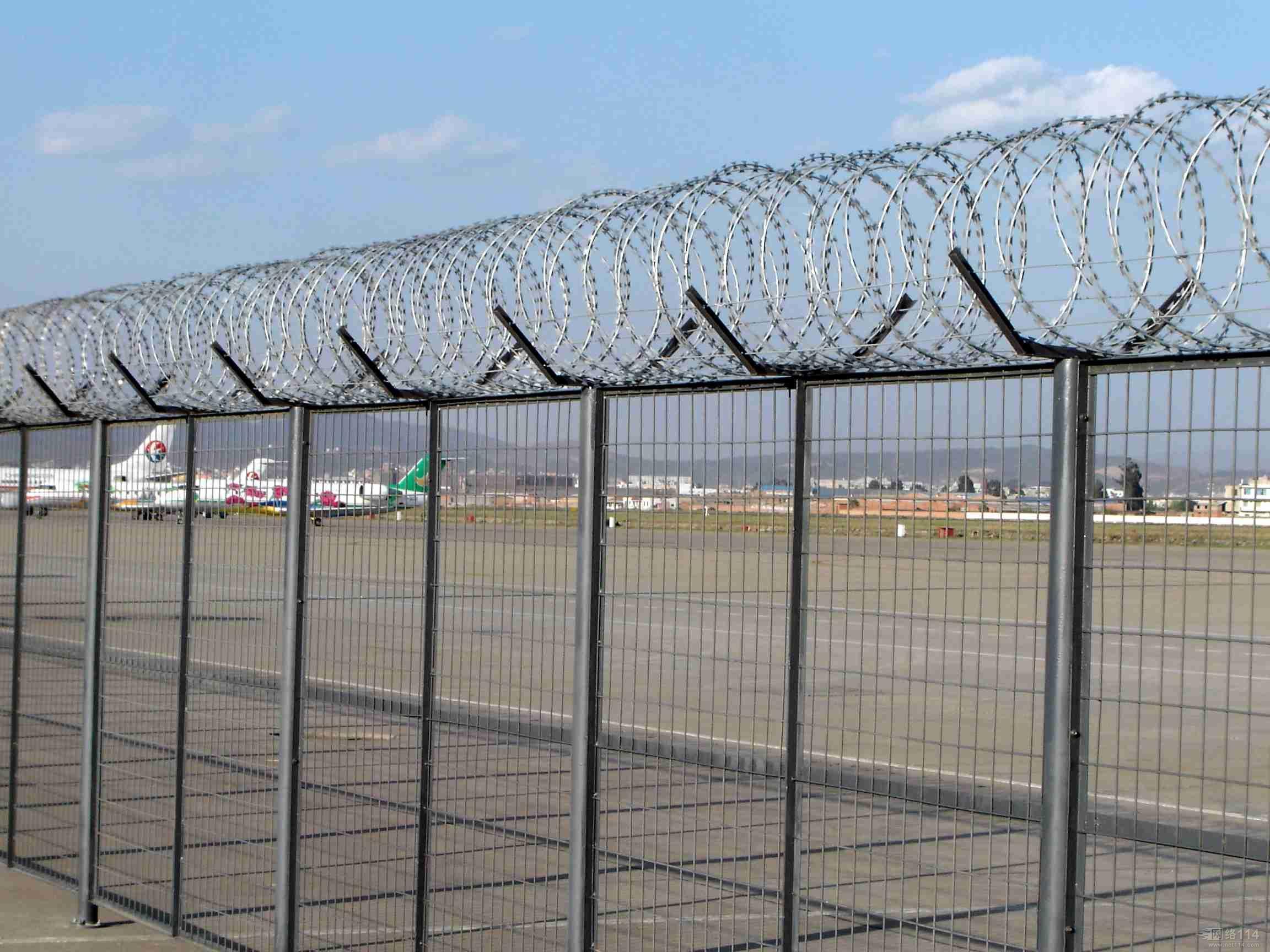 机场隔离网,又称为机场护栏网,是安装应用在机场两侧跑道当中,都具有网孔均匀,网片材质稳定以及立柱衔接方面的优势,其中针对于机场围界的选择,必须通过稳定以及全面型材质,选定更为全面,以及价值优良的钢丝焊装结构物质。机场围界上面会安装有两个Y型结构产品,用于更好的发挥金属框架方面优势。