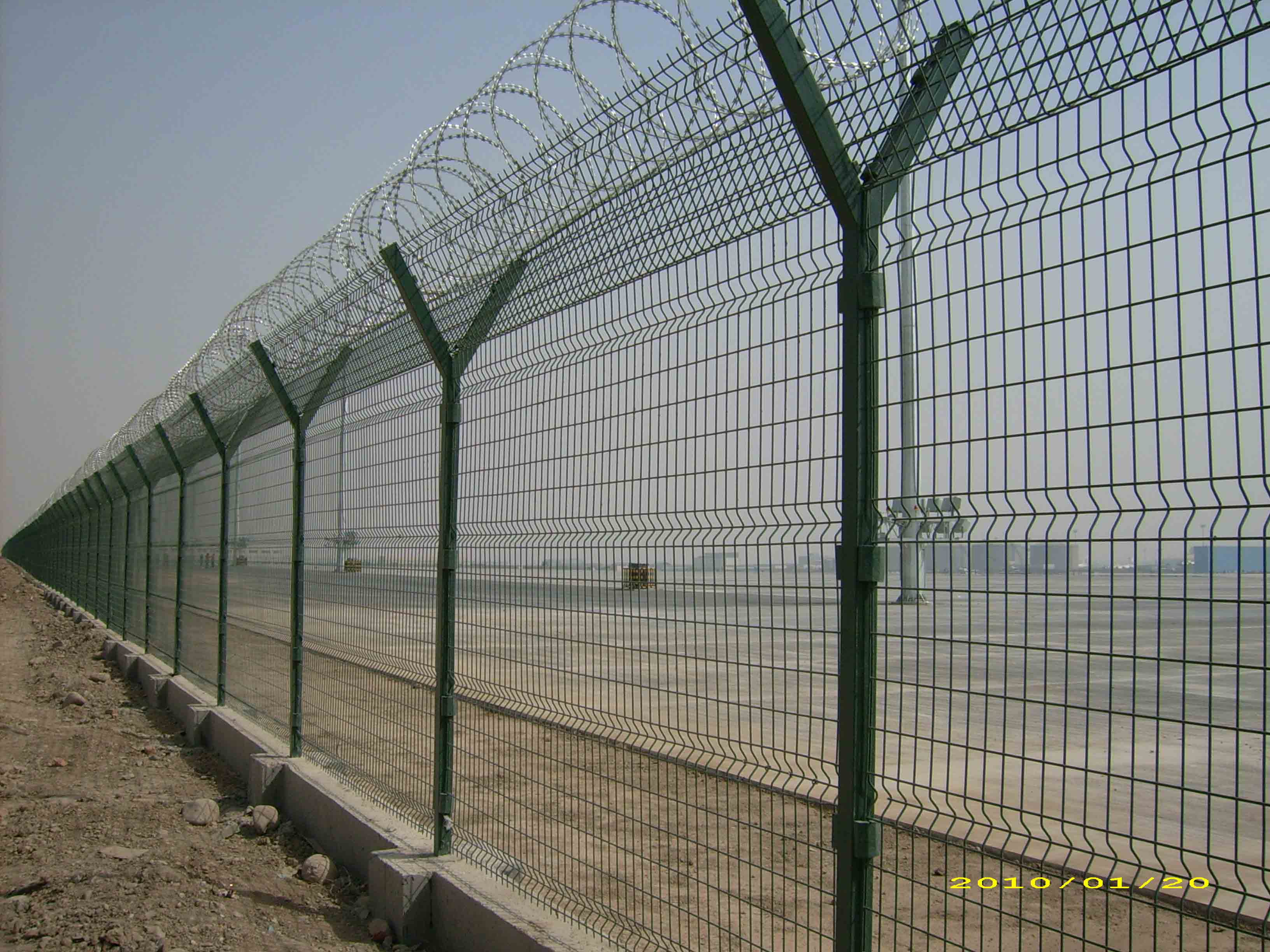 3、机场隔离网其他连接方式,其他常见的方式,还有折弯加工焊接、另外根据注塑钢丝丝径大小、附件连接程度等