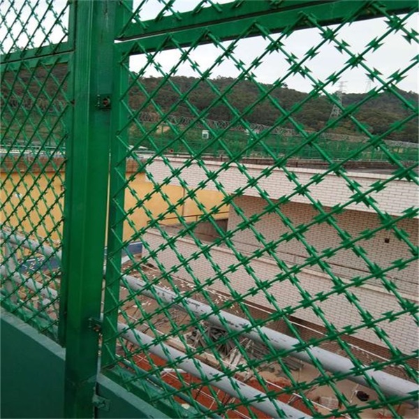 刀片式焊接隔离网的焊接制作方法,刀刺隔离网建设干监狱、看守所的内外墙地面及高墙之上,网墙内侧或顶部加装蛇腹形刀刺网,形成一道高不可攀,难以逾越的隔离障碍。配合高压打击电网、各种监控报警设备确保监狱安全万无一失。