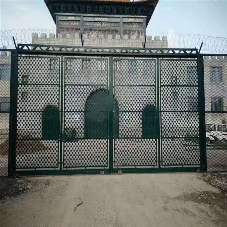 梅花刺片监狱防护网整体梅花监狱护栏网表面墨绿色喷涂、也常用银灰色喷涂、高端大气、既起到防腐防锈的作用、又有装饰的效果。