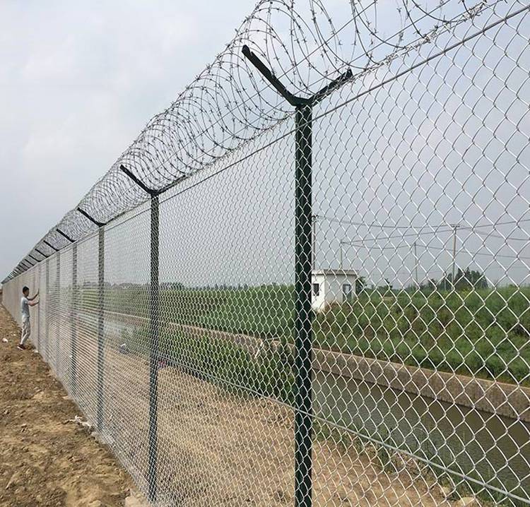 机场铝包钢围界网是一种新型的机场围界产品,相比普通产品防腐效果更好,使用寿命更长,防护能力更强。机场铝包钢围界网在钢丝上包一层铝,包铝后可冷拔以提高强度。这是一种较难制造的金属线,尤其是控制好钢丝表面质量,拉丝润滑以及防止造成后续应用断丝等方面。铝包钢丝围界具有很高的强度,防腐防锈可以达到二十年以上,而且具有很大的灵活性。是性价比很高的一种围界网。
