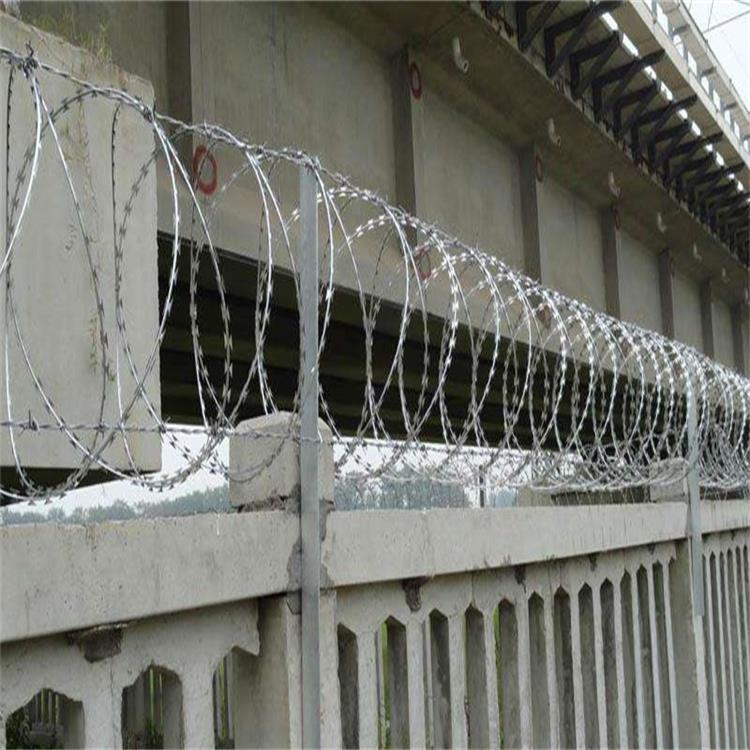 刀刺隔离网片得收放: 刀刺隔离网每2圈有3-7个卡扣,而且是圈圈相卡,拉开以后形成螺旋状,拉伸的时候注意一定要带防护手套,预防划伤。拉开的时候只需要固定刺网的一边,然后向相反方向拉开就行,注意孔的间距不要太大,不然影响美观效果。收的时候只要慢慢的送回去就行,操作简单,施工便利。可用于任何需要防护安全场所。