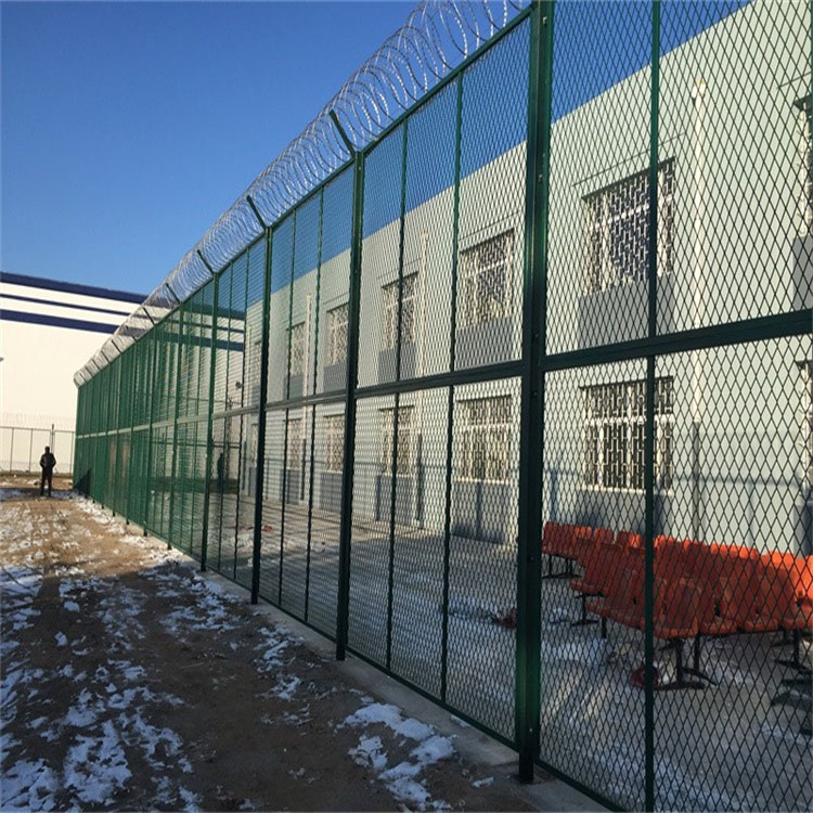看守所金属隔离网墙表面采用电镀、热镀、喷塑、浸塑等防腐形式,具有很好的抗老化、抗晒、耐候等特点。其产品造型美观、花色多样,既起到围栏作用,又起到美化作用。由于具有安全性高、防攀爬能力好,网片连接方式采用特制SBS紧扣件,有效防止人为的破坏性拆卸,横向四道折弯加强筋,使网面强度显著增加。