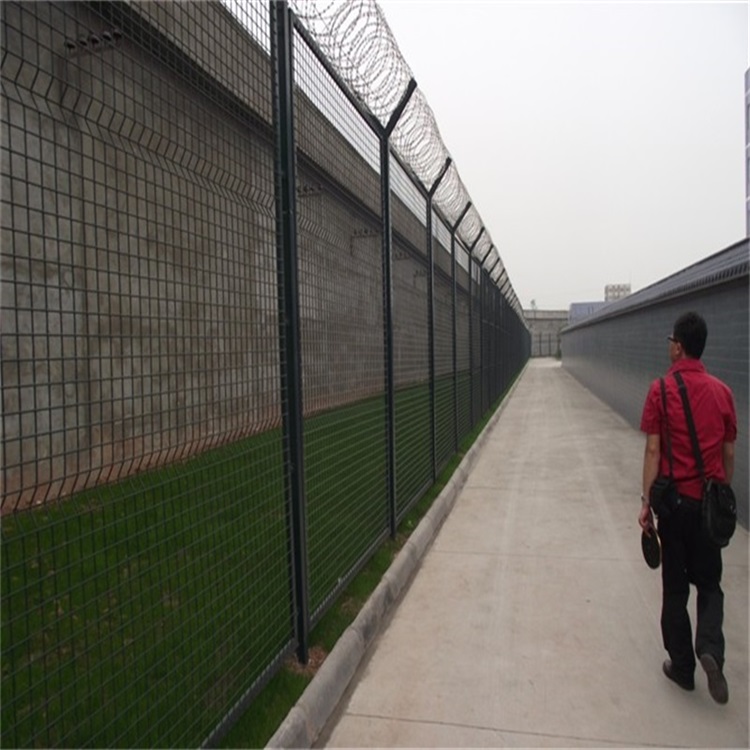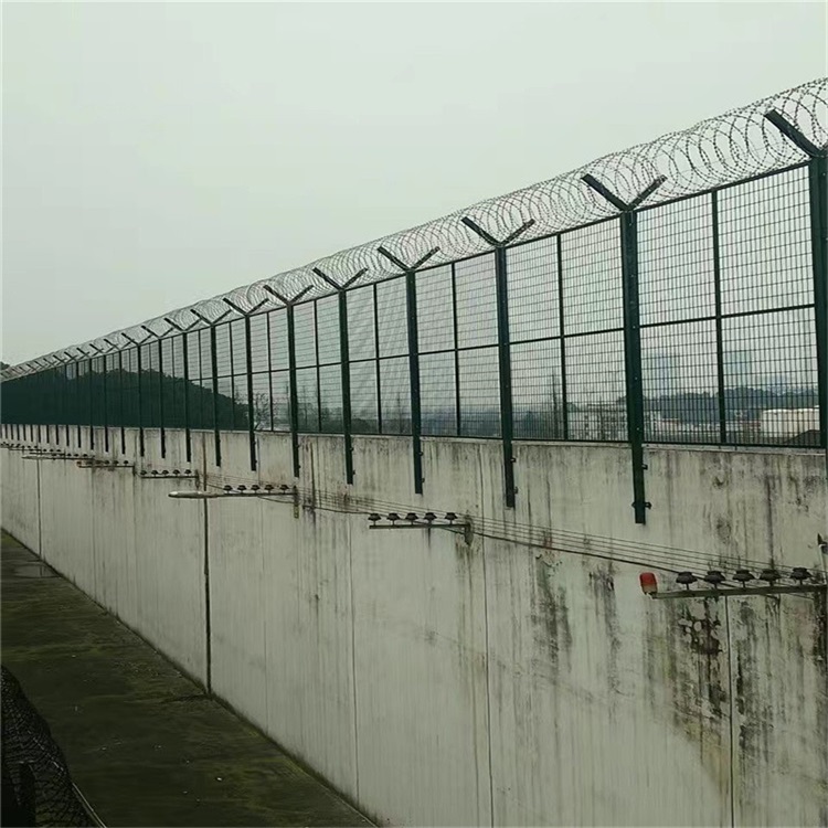 金属铁丝防爬护栏使用在监狱中安全防护高,具有防攀爬、抗冲击、抗剪切特性和良好的震慑作用,用于监狱看守所、警戒线军事基地等安全领域。
