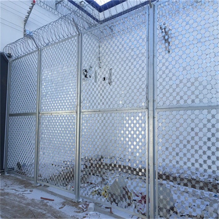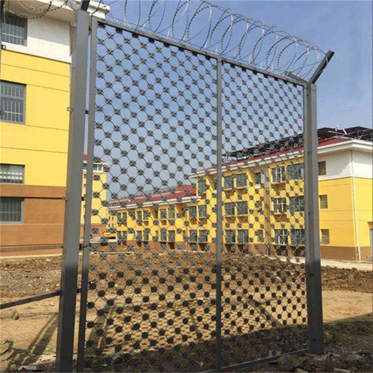 梅花刺隔离网又称作太阳花隔离网墙,是由V型支架立柱,加强型焊接片网,安全防盗连接件和热镀锌刀片刺笼组成,强度和安全防御性级别很高。近年来,被广泛应用在监狱,军事基地等高安全场所。注:如果在监狱护栏网顶部加装刀片刺丝、刀片刺绳后又很好的增强了安全防护性能。