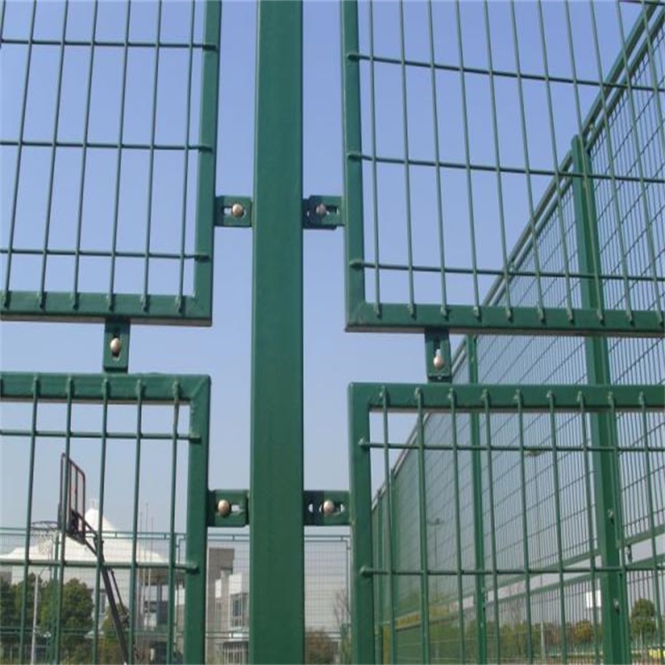 足球场地防护网施工工序:底板固定-网立柱焊接-顶、底横杆焊接-挂网施工-网门施工、喷漆。焊围网地板及立柱:测量放线,按设计图定好网柱及灯柱埋件位置。制作固定件,围网立柱固定件尺寸为150×150×8,灯柱固定件尺寸 为200×200×10,打膨胀螺丝固定,螺丝长80mm以上。焊接立柱及横杆。立柱门距为3m,立柱全部焊完后,方可开始焊上、下横杆,所有焊接均采电J422焊条,焊缝要求满焊,焊缝高度及宽度均应大于0.7d。